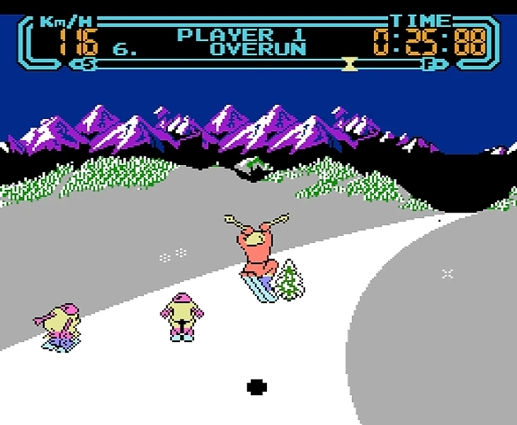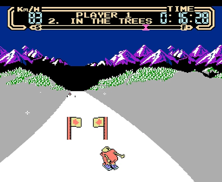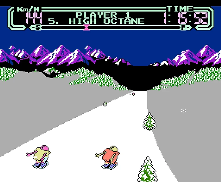 Геймплей: игроку предстоит управлять безымянным героем и привести его к чемпионству по лыжному спуску :) Мешать вам будут другие лыжники, а так же снеговики, елки, бугры и саночники, попадающиеся на пути. Столкновений желательно избегать, чтобы не терять скорость и не воткнуться головой в сугроб. А вот на бугорки можно наезжать, так как они подкинут вас в воздух, где вы можете исполнить какой-нибудь финт и получить за это бонусные очки в конце уровня.