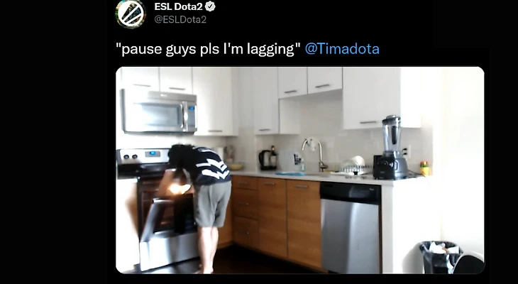Что вы делаете во время игры? Пьете чай, слушаете музыку или торгуете на рынке опционов? Вот Тимадо пробует себя в кулинарии. В матче против 5RATFORCESTAFF Энцо отложил клавиатуру с мышкой и подошел к духовке. Удобно, что играл он на кухне – идти пришлось не долго, а на камере все было видно. Комментаторов и чат это сильно рассмешило, После игры организаторы турнира не забыли пошутить над игроком: «Парни, поставьте паузу, я лагаю».