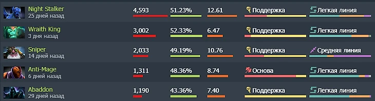 3. Больше всего матчей у него на Night Stalker. По словам Андрея, он просто хотел поднять статистику непопулярному герою.