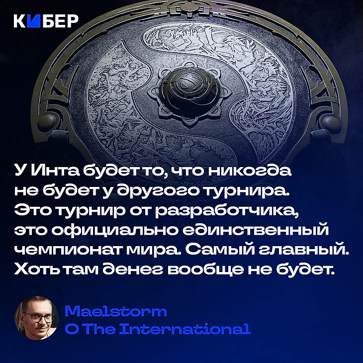 Все равно у Инта будет то, что никогда не будет у другого турнира. Это турнир от разработчика, это официально единственный чемпионат мира. Самый главный. Хоть там денег вообще не будет.
