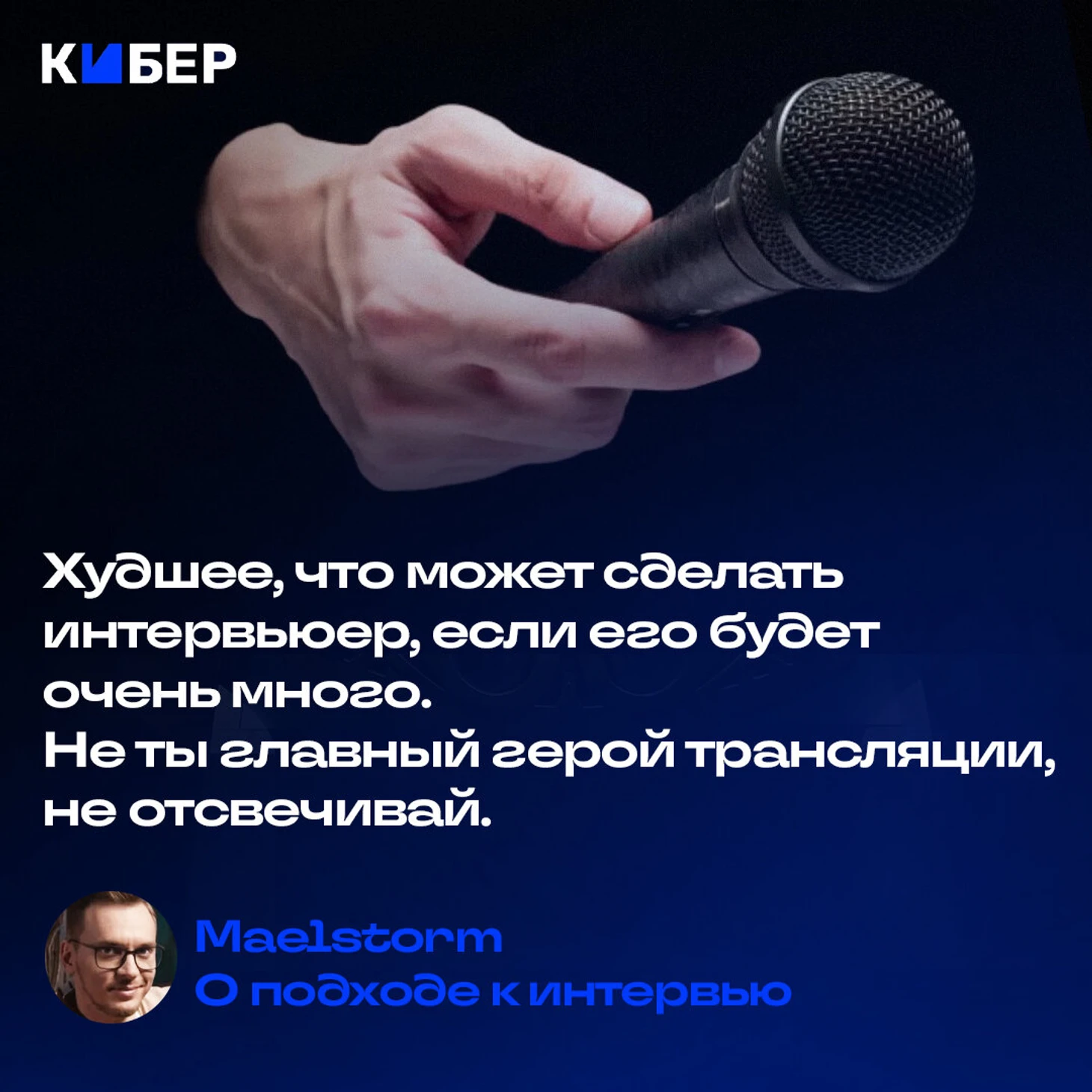 В интервью с проигравшим вообще интервьюер не нужен. Это очень важно на самом деле. Худшее, что может сделать интервьюер, если его будет очень много. Ты просто задаешь какой-то вопрос, на который игрок начинает отвечать – все. Не ты главный герой трансляции, не отсвечивай.