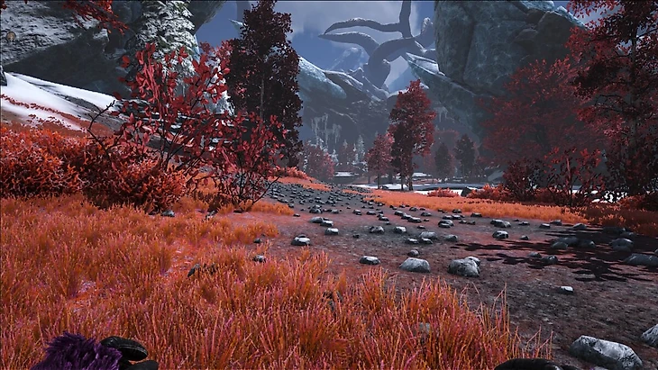 Путь довольно спокойный, пейзажи красивы, снежные горы, скалы, синее небо, солнце, из врагов только свирепые медведи. аргентависы и теризинозавры, ничего что могло бы мне сильно навредить.