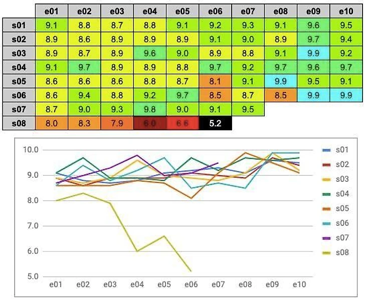Но вот мы снова смотрим на эти оценки и можем задуматься: «Да как же так! Как сериал мог так низко упасть? Неужели дело только в восьмом сезоне?».