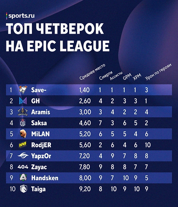Первый тест рейтинга – на матчах первого дивизиона Epic League. Их очень удобно обсчитывать, так как они идут с четверга по воскресенье. Изучайте топы и пишите фидбэк по поводу формулы!