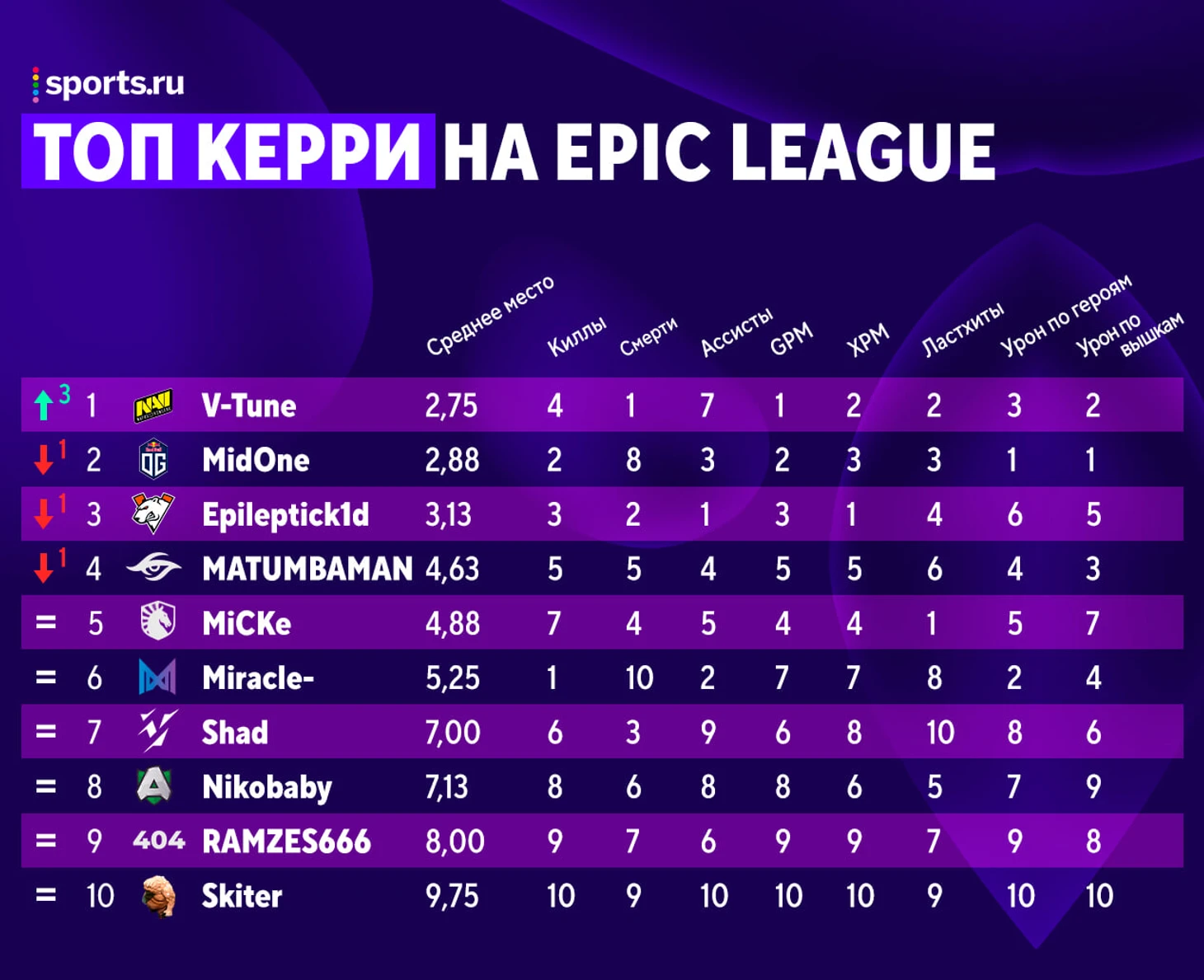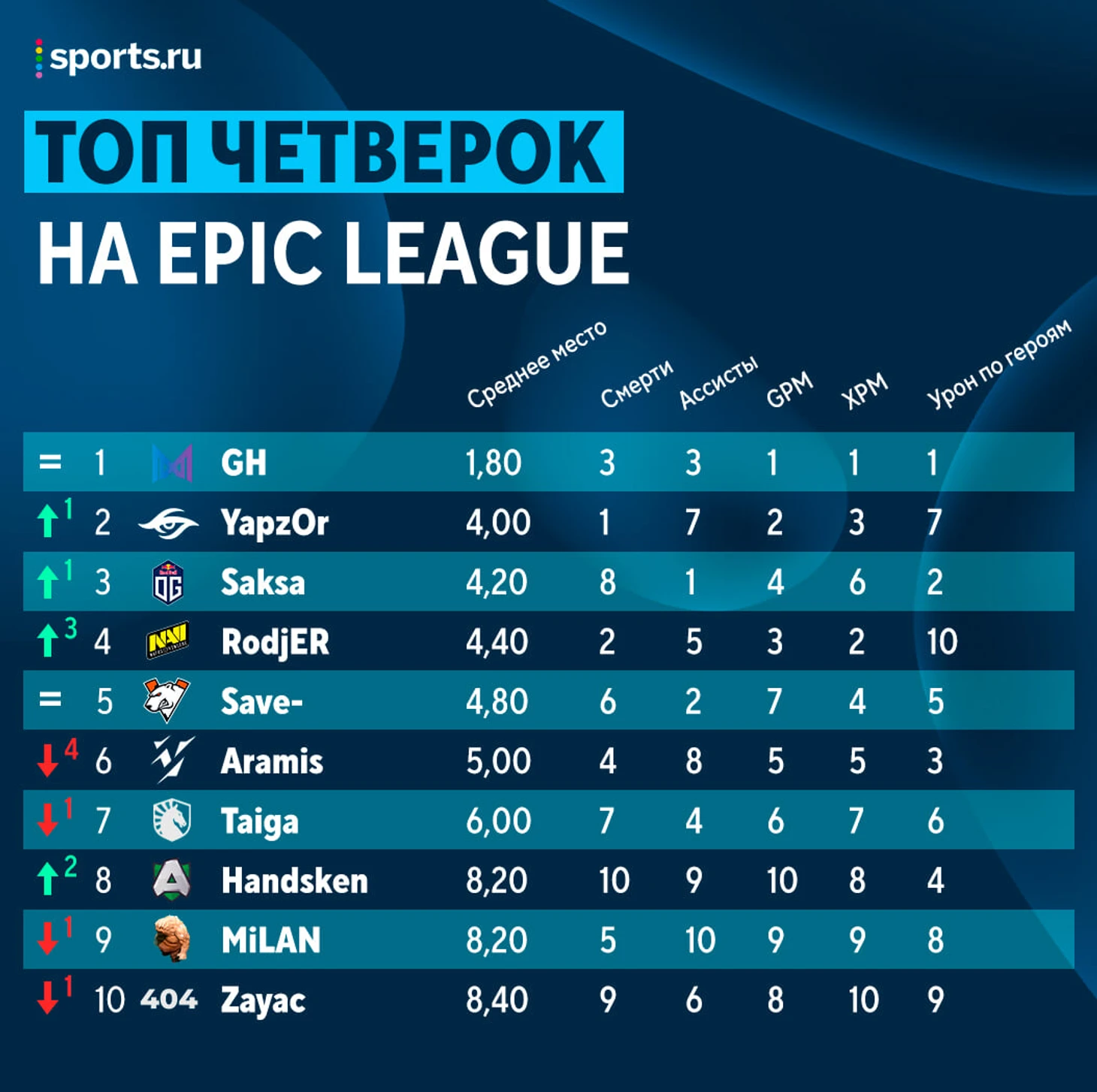 Плей-офф первого дивизиона Epic League уже стартовал, и мы обязательно сделаем новый рейтинг по итогам решающих матчей, поэтому подписывайтесь на блог, ставьте плюсы и пишите в комментах, что думаете про обновленную статистику!