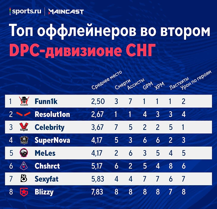 Рейтинг игроков второго СНГ-дивизиона после первой недели: все HellRaisers – в топ-2, Gambit – на последних местах