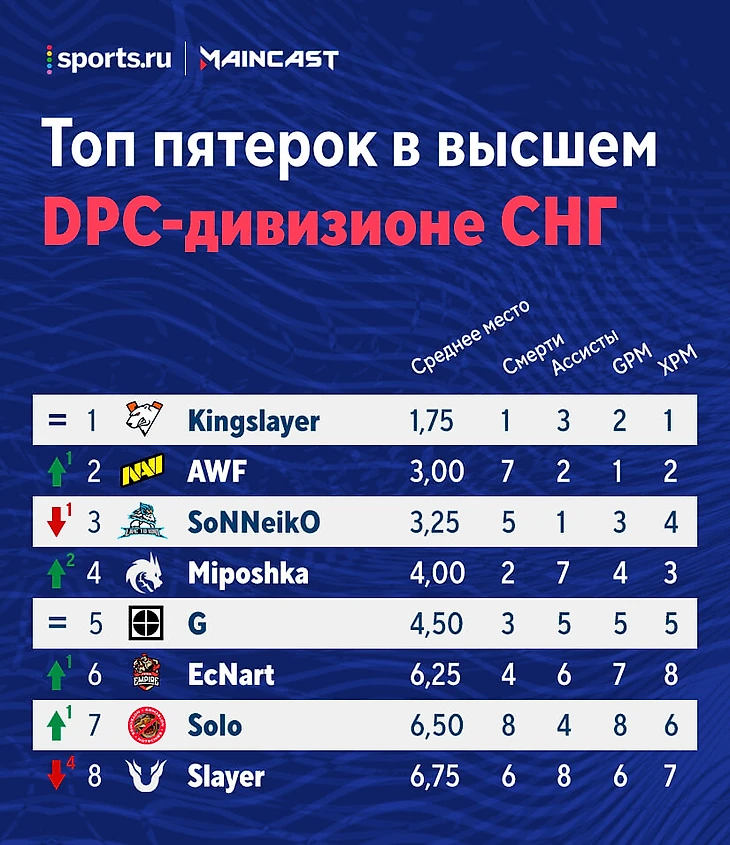 Рейтинг игроков высшего дивизиона СНГ перед четвертой неделей: VP доминирует, Solo больше не последний