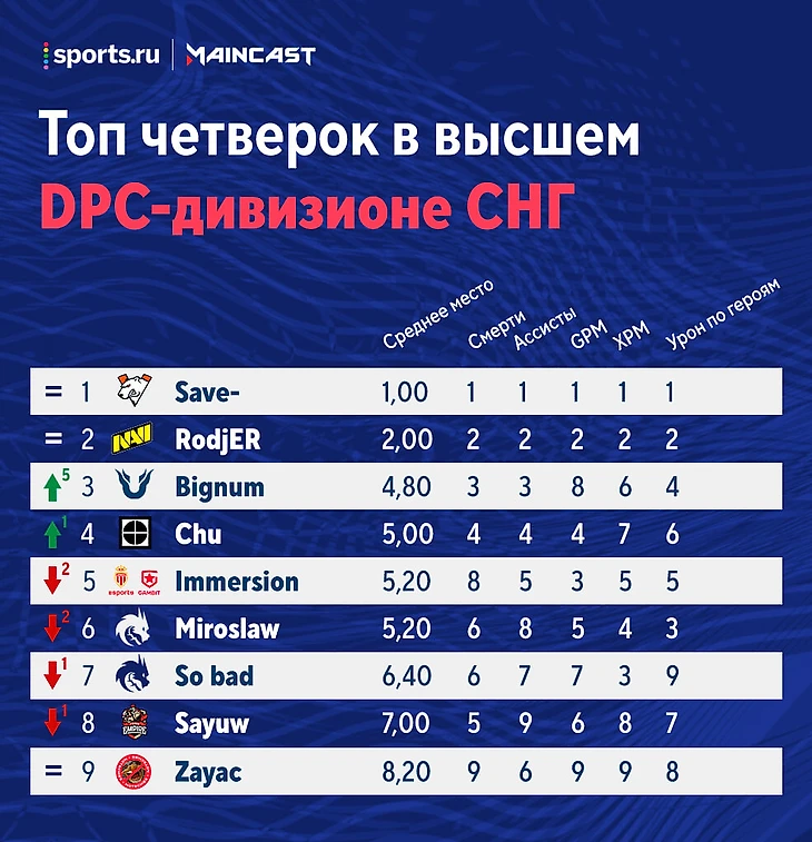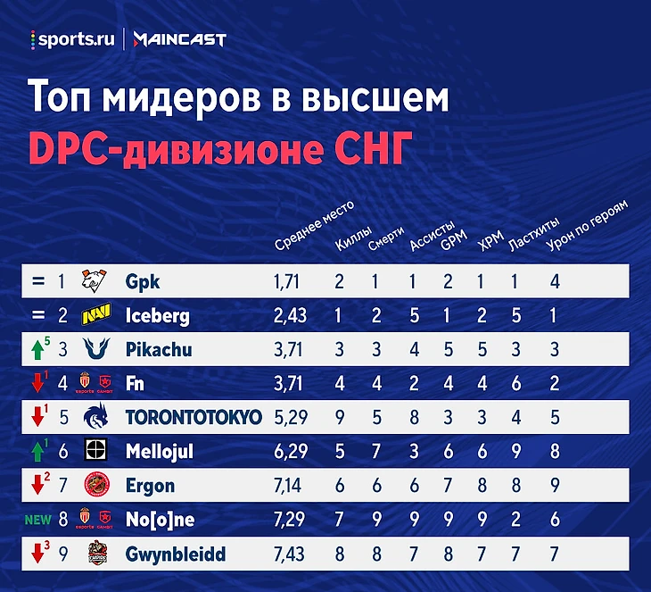 Рейтинг игроков высшего дивизиона СНГ по итогам 4-й недели: No[o]ne – предпоследний, Pikachu и G – в топ-3