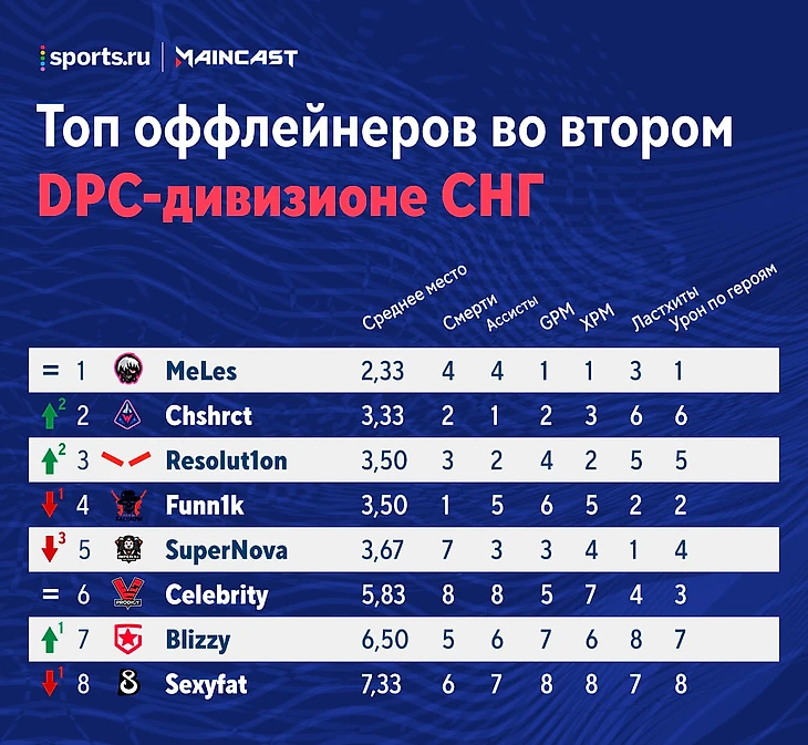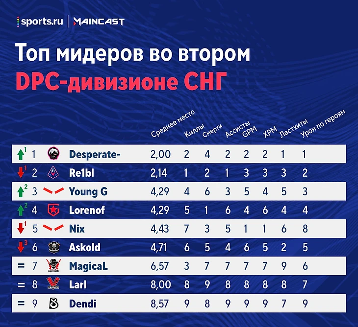 Рейтинг игроков по итогам второго СНГ-дивизиона: Куман и Ямич – лучшие в своей роли, Денди – худший мидер