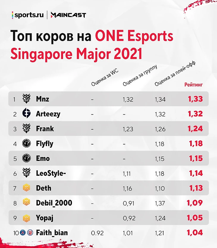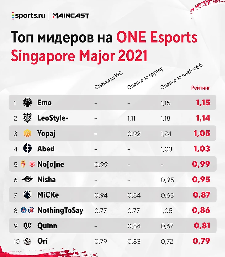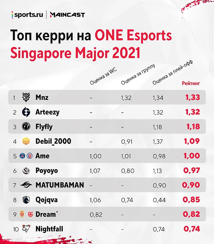Рейтинг игроков по итогам мейджора: Нун – пятый мидер турнира, лучший керри не вышел в финал