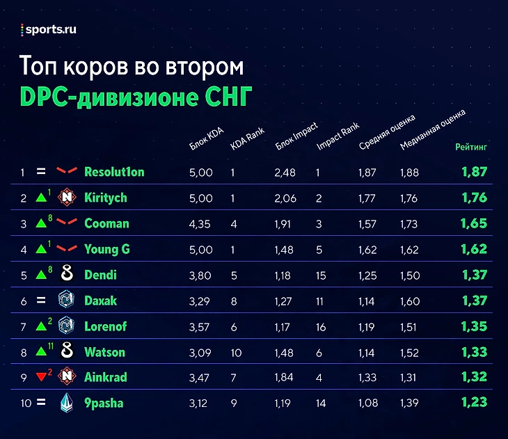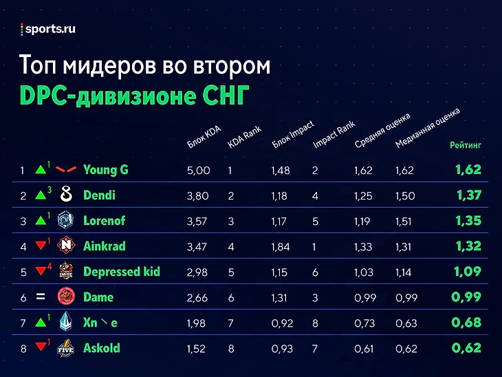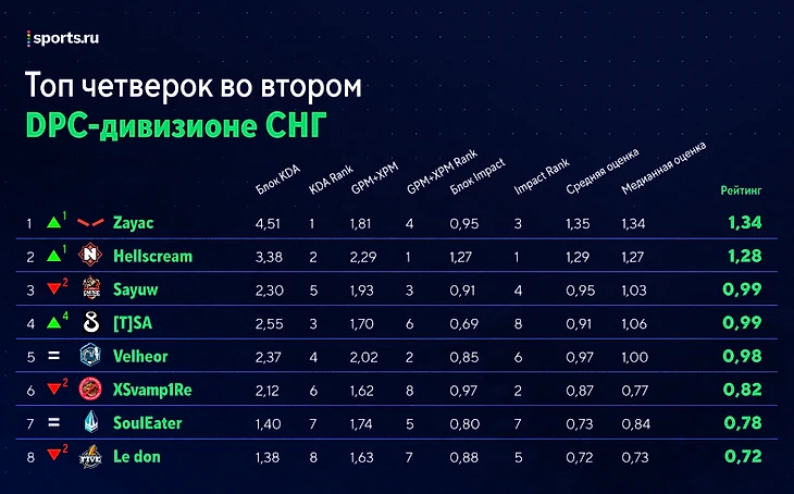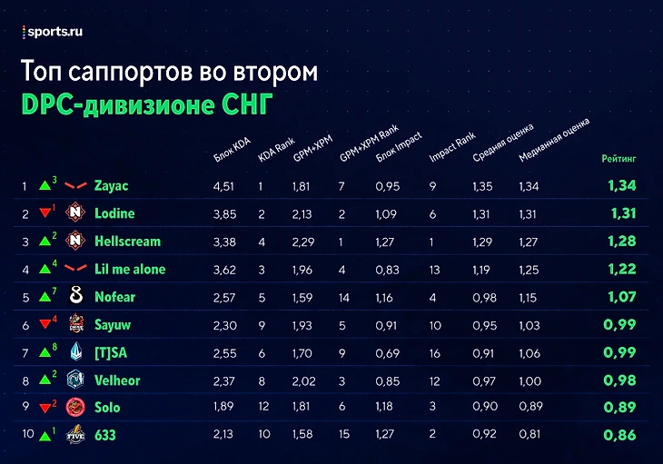 Рейтинг игроков второго СНГ-дивизиона перед третьей неделей: Dendi – в топ-5 коров, Zayac – лучший саппорт