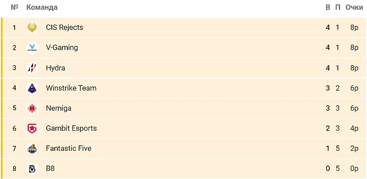 Конечно, не стоит обольщаться. У Winstrike впереди два лидера дивизиона. 1,60 у Ларла – следствие не только классной индивидуальной игры, но и прискорбного состояния B8. Команда Мага реабилитировалась после 1-2 на старте, но V-Gaming и CIS Rejects могут испортить ей статистику.
