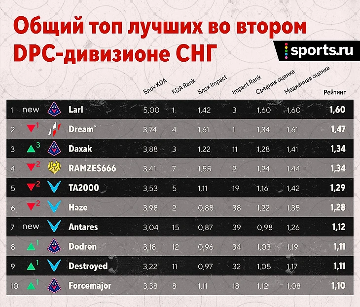 – Daxak: +0,15 по рейтингу и солидное место в общей тройке лучших. Никита блестяще отыграл обе серии.
