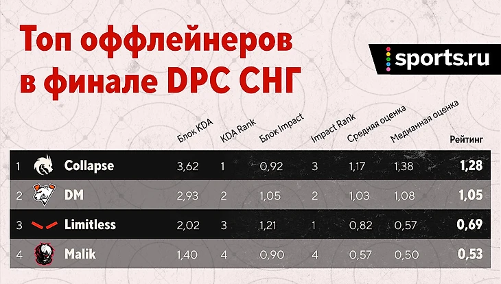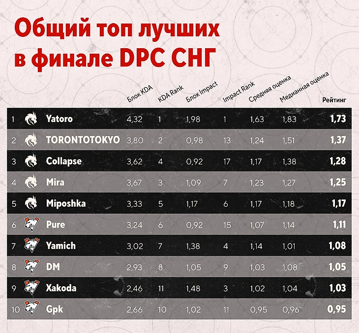 Рейтинг финала DPC СНГ: Яторо – лучший, Коллапс – в топ-3