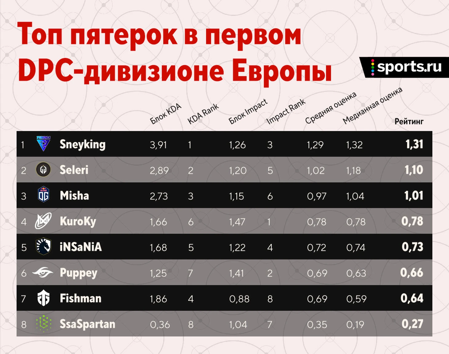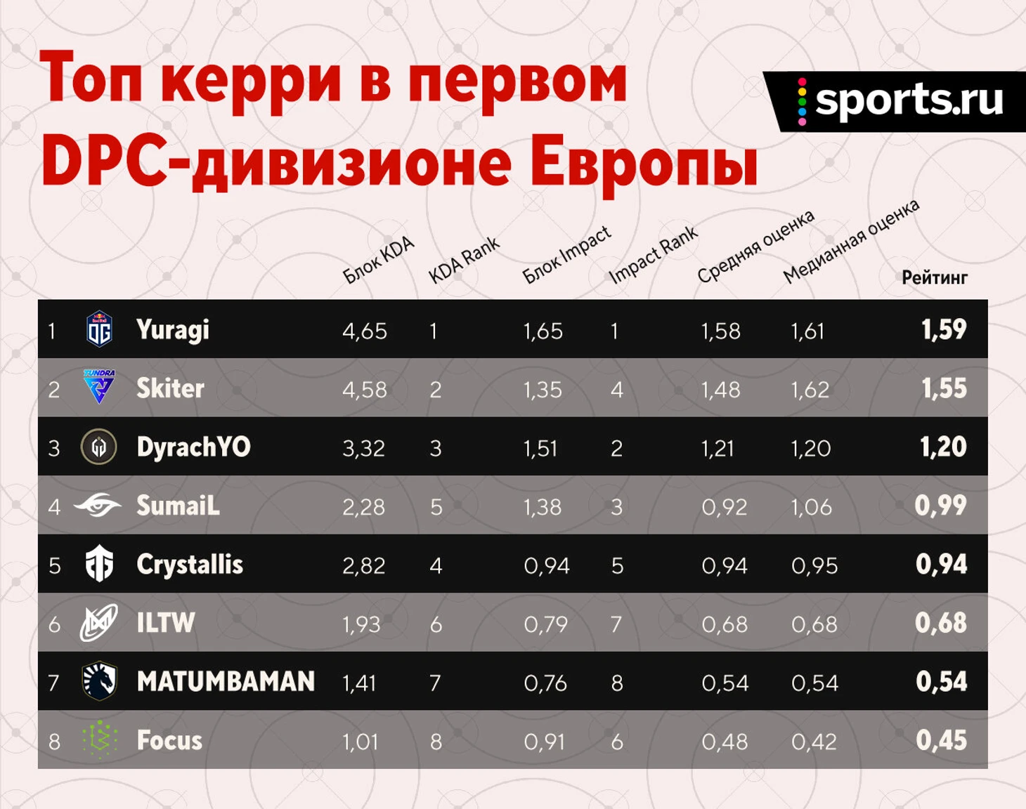 Рейтинг DPC-лиги Европы после 2 недель: Dyrachyo – в топ-10, Yuragi – лидер