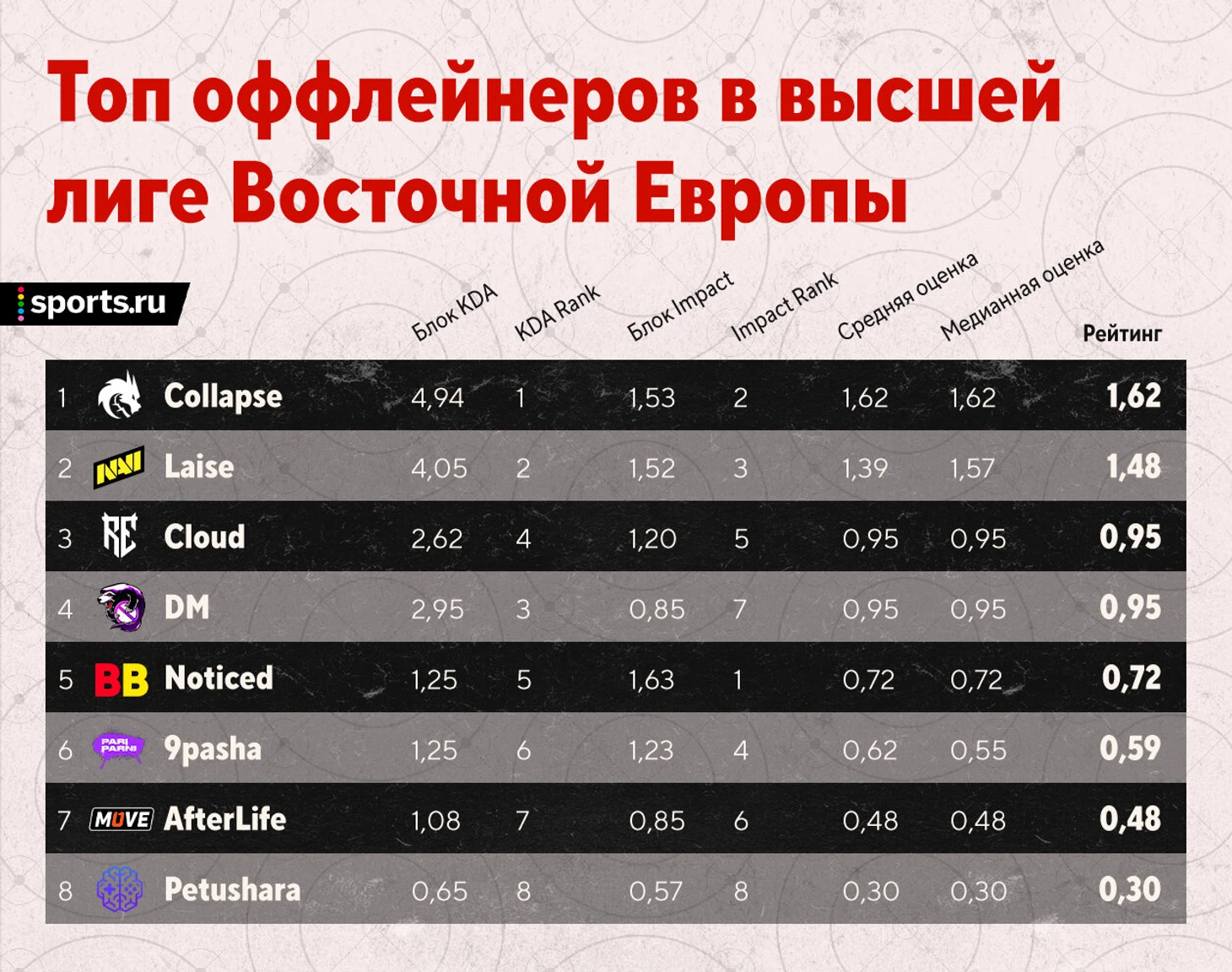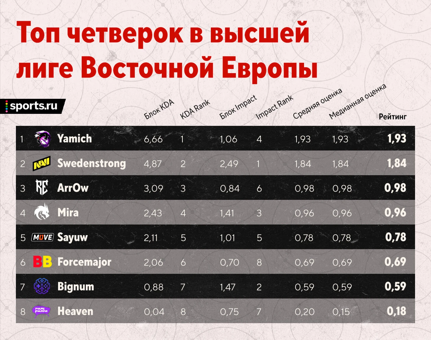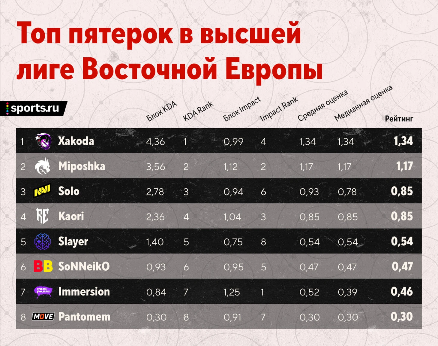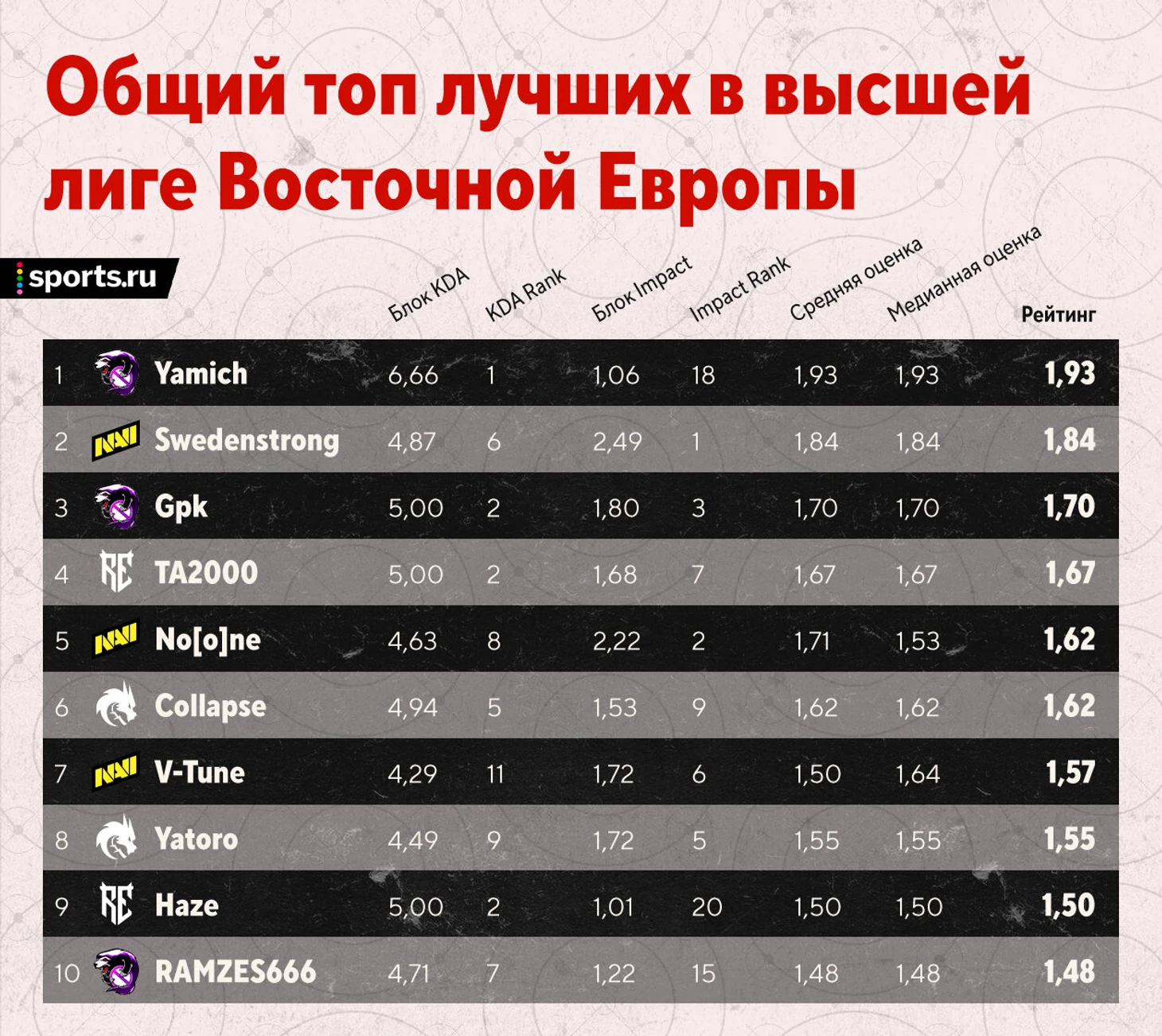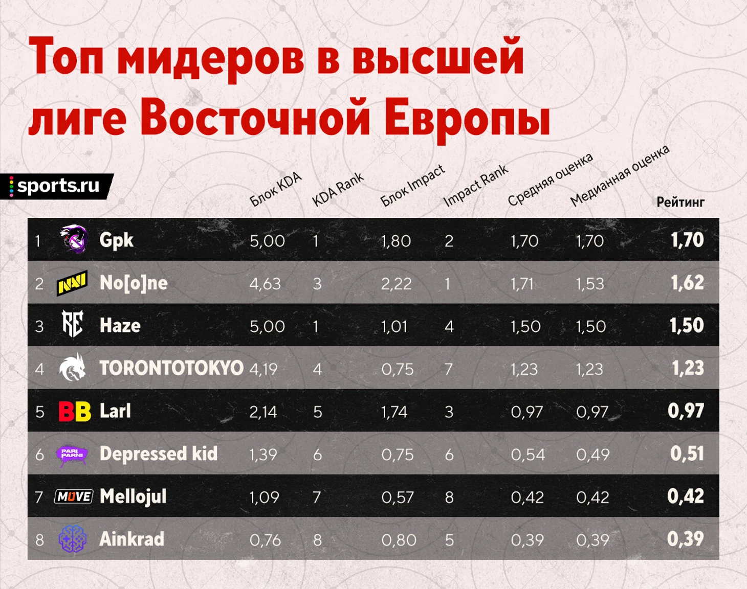 Gpk и No[o]ne – в топ-5, четверки VP и NAVI – лучшие. Рейтинг высшей лиги Восточной Европы