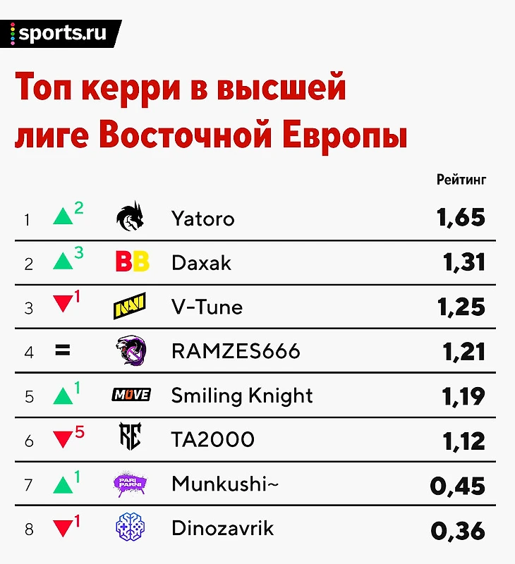 No[o]ne и Collapse влетели в топ-3, а Yatoro возглавил таблицу. Рейтинг высшей лиги Восточной Европы