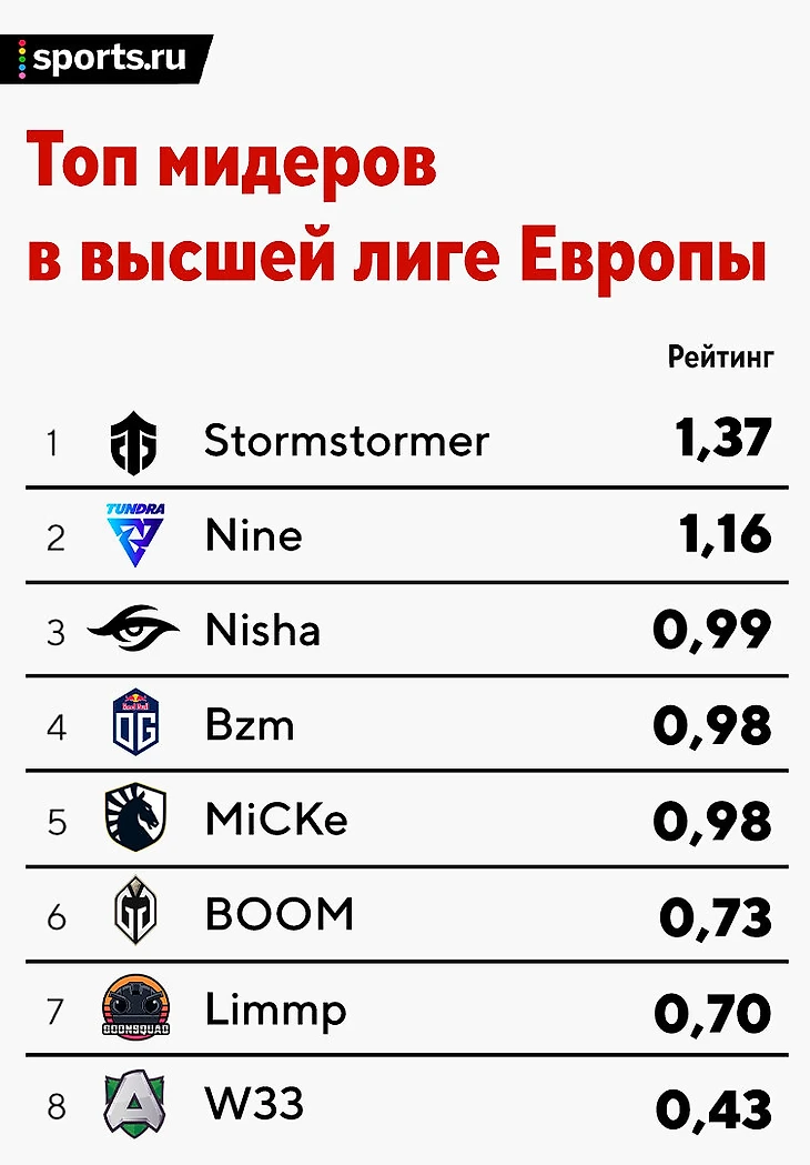 ★ У лидеров из Тундры все классно и здорово. 33 – снова король оффлейна, Saksa и Sneyking – по-прежнему торт, а Skiter тащит не хуже Pure. Один маленький нюанс: Nine мог бы идти и повыше. 0,21 отставания от мидера Entity – это слишком много. Негоже возможному чемпиону лиги столько проигрывать!