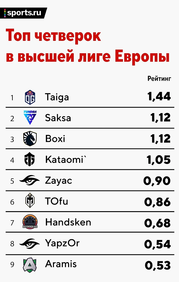 ★ Zayac нормально вписался в Team Secret. У всей команды, кроме Пуппея, рейтинги в пределах 0,88 – 0,99. Zayac с 0,90 – не исключение. Правда, Secret сейчас в плохой форме и борется за выживание, но это уже другой вопрос. Посмотрим на рейтинг Бакыта после игр с Gladiators и Goonsquad. Весьма вероятно, что он вырастет.