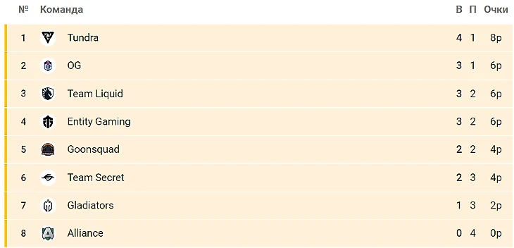 А вот Boom, Seleri и Ace вернулись в первую половину 2021-го. Когда они вылетали из высшей лиги. Напомню, у Гладиаторов остались три игры – против Alliance, Secret и Tundra. Если обыграть только состав Вихи, то это максимум переигровки с Goonsquad.