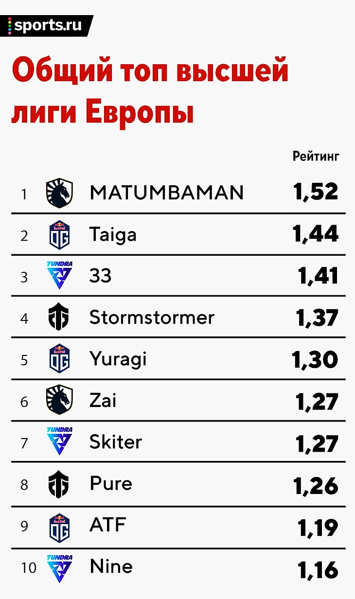 ★ Начнем с Entity. У Пьюра все отлично! Лучший игрок Восточной Европы теперь идет к MVP уже в Западной. Серия с Тундрой, конечно, подпортила стату Ивану, но он все еще высоко. И отставание в 0,26 от Матумбы Пьюр вполне может отыграть уже через неделю. Там Entity сыграет с Liquid и Alliance. Две серии по 2-0 – и Fishman на мейджоре, а Pure явно минимум в топ-5 по рейтингу.