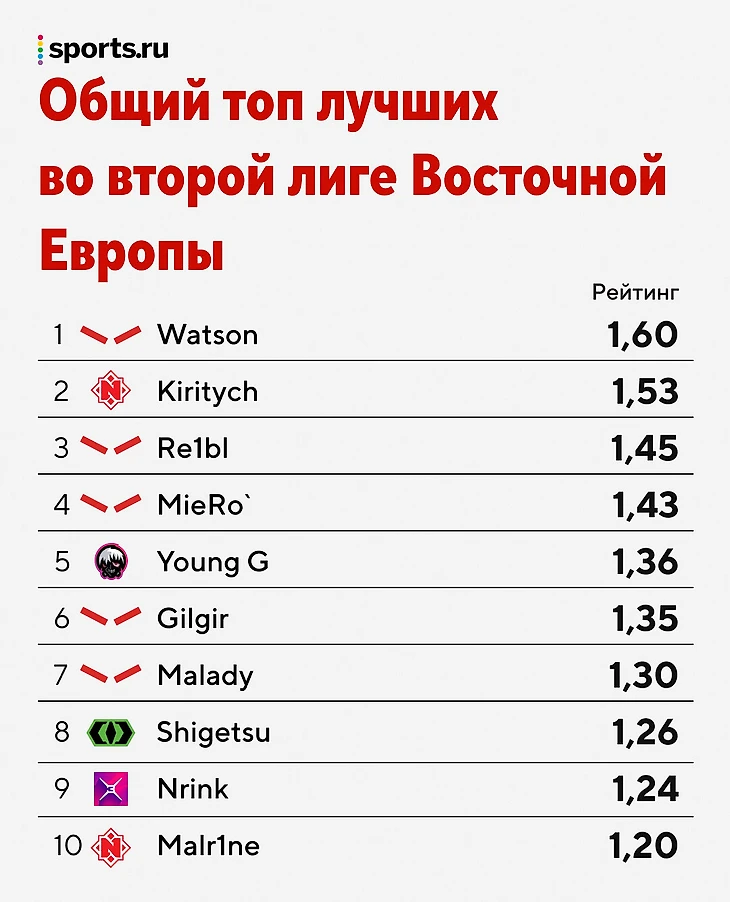★ Поздравляем Немигу с повышением! Кажется, вылет в прошлом сезоне положительно повлиял на клуб. Обновленный ростер с Со Бэдом уверенно отыграл всю дистанцию и проиграл только HR. Огромную роль в повышении сыграл Kiritych: несостоявшийся новичок VP показал настоящий мастер-класс! Еще посмотрим, удержит ли Watson лидерство в топе керри после матча с Cybercats.