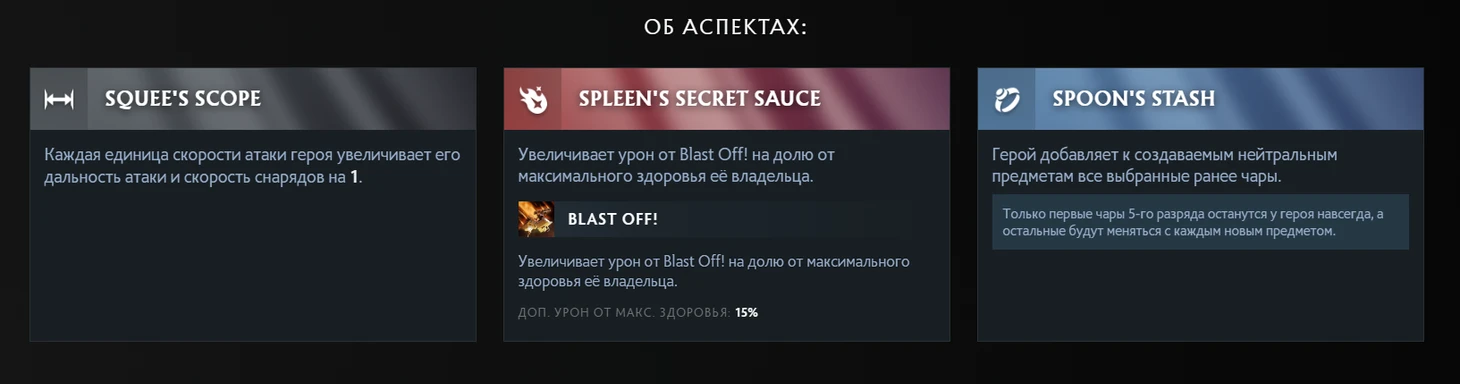 По какой-то причине некоторые аспекты просто отключены. У Shadow Shaman нельзя выбрать Chicken Fingers и тычками превращать в курочек. У Pugna отключен Rewards of Ruin, который дает +1,25% к урону от заклинаний за каждую разрушенную башню. И снова: почему?