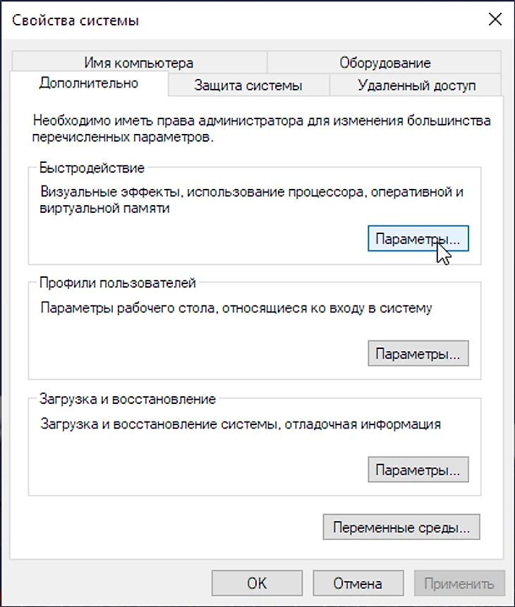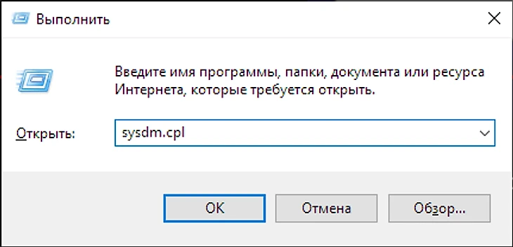 2. Если предыдущий шаг не помог, нажмите сочетание клавиш Win+R и введите команду sysdm.cpl