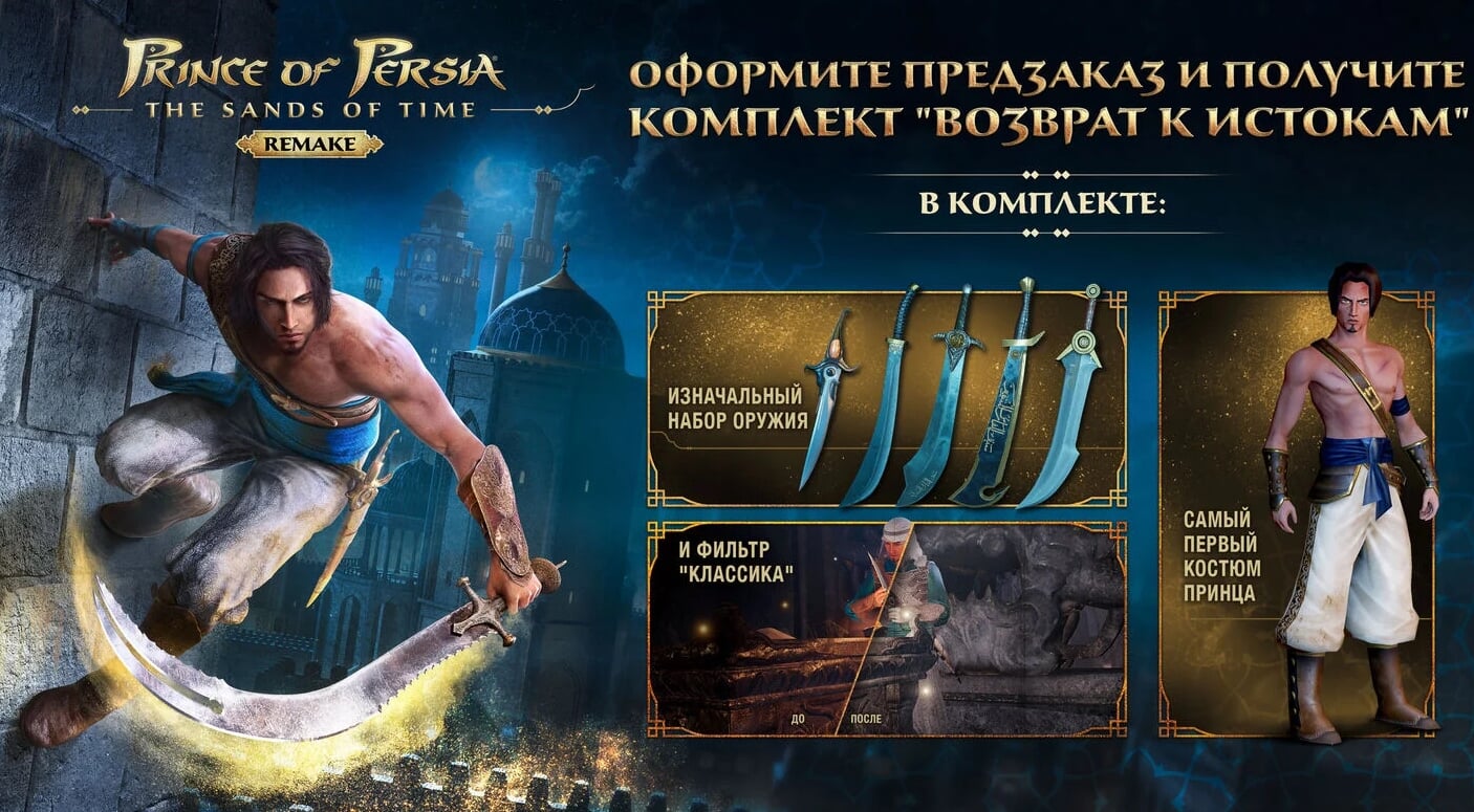 Предзаказ Prince of Persia: The Sands of Time уже открыт. Ubisoft подготовила особый подарок для тех, кто купит игру заранее. Бонусы предзаказа для всех платформ одинаковы – игроки получат особый набор «Возврат к истокам».