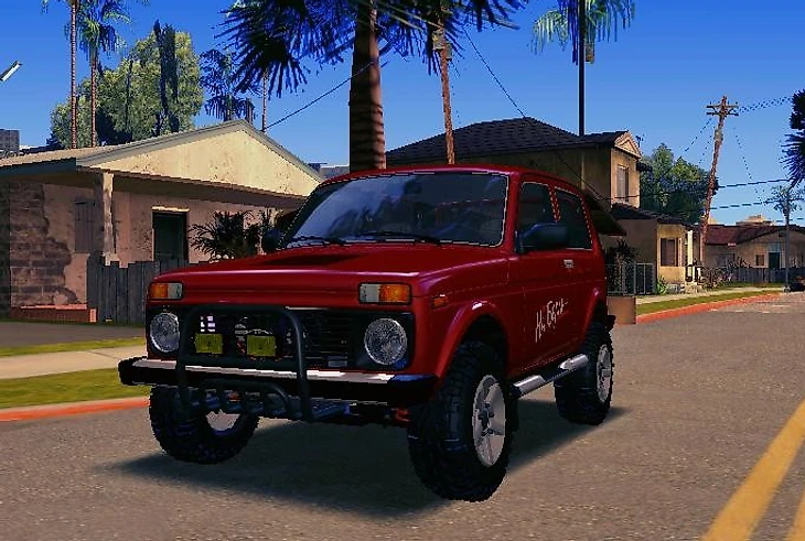 Мод на классический российский внедорожник, «Ниву». Моделька машины немного отличается от заводской: добавлен кенгурятник, а на водительскую дверь нанесена надпись «На Берлин». Если не обращать внимание на эти детали, в целом этот мод для ГТА Сан Андреас выполнен на достойном уровне.