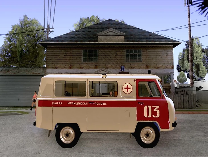 «Буханка» скорой помощи – https://gamemodding.com/ru/gta-san-andreas/cars/7790-uaz-3962-skoraya-pomosch.html