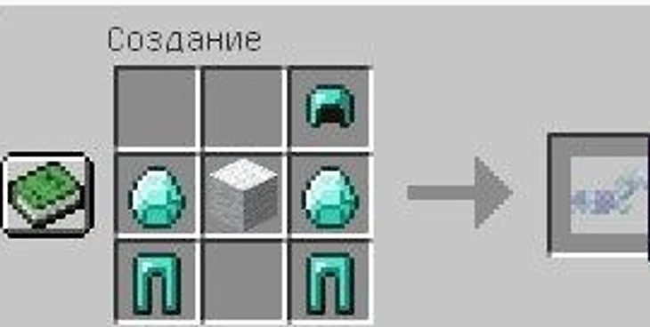 Необходимые предметы: Шлем, Поножи (х2), Алмаз (х2), Железный блок.
