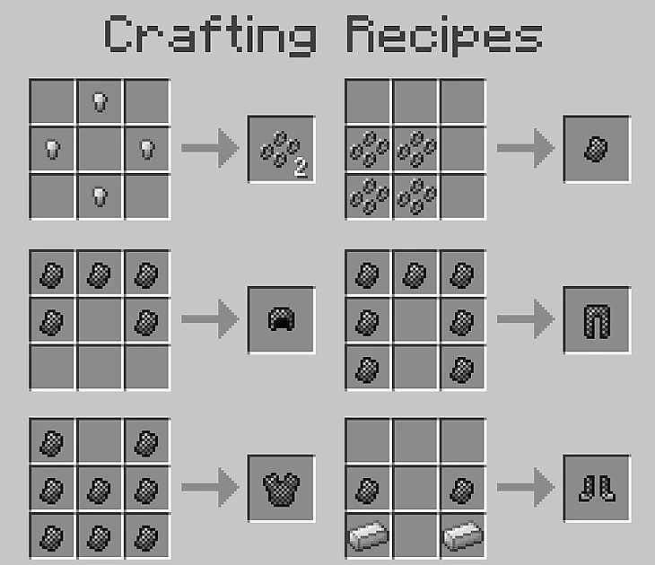 Кольчужная броня является также редким предметом, но не обладает высокими характеристиками. Для ее крафта сначала необходимо создать цепь, из которой потом можно сделать кольчужную броню.