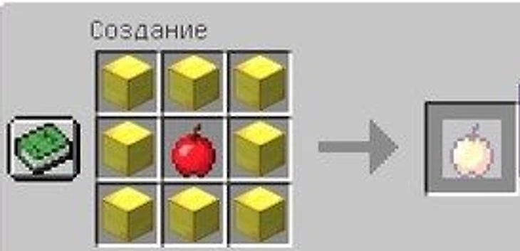Необходимые предметы: Яблоко, Золотой блок (х8).