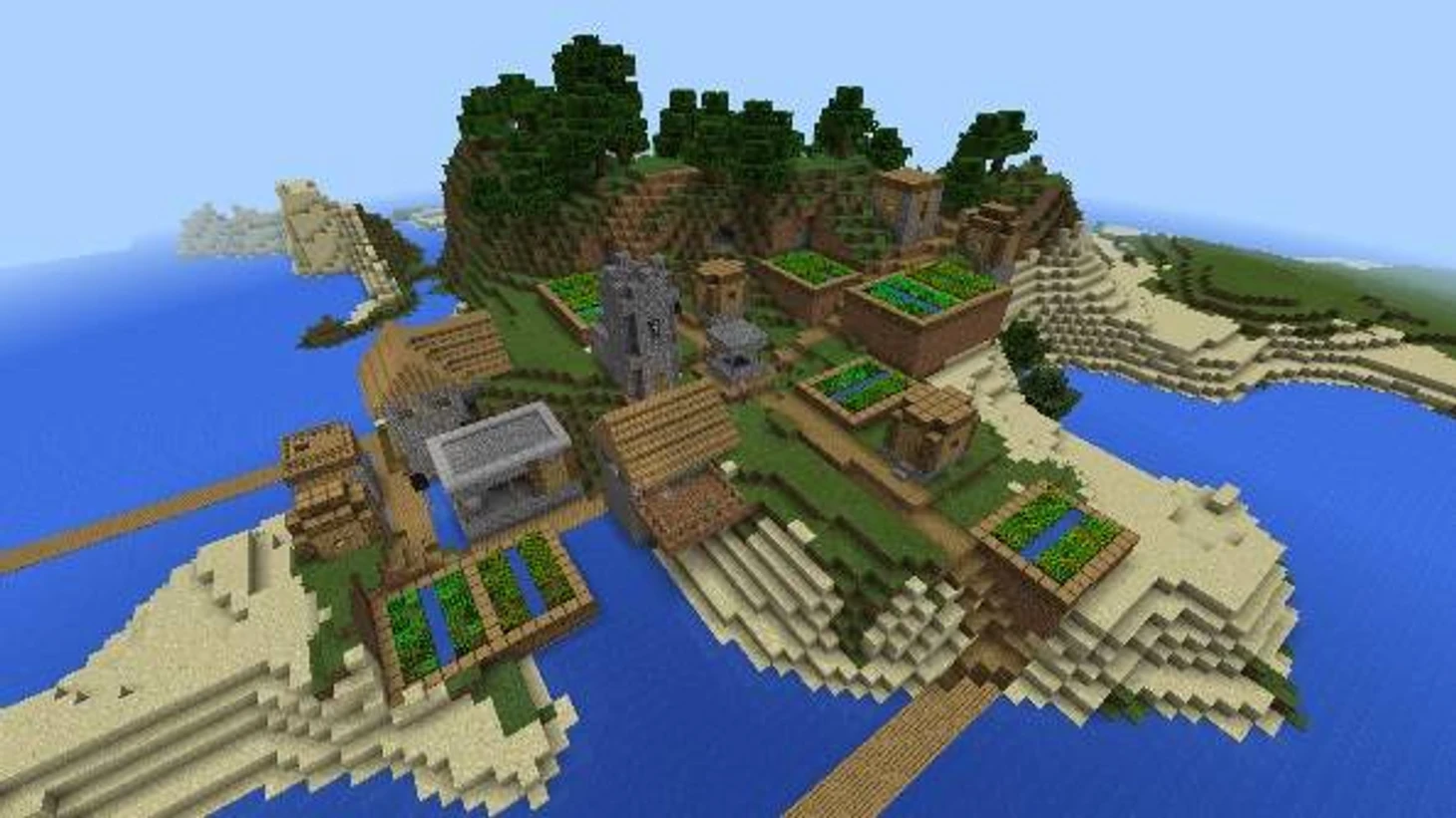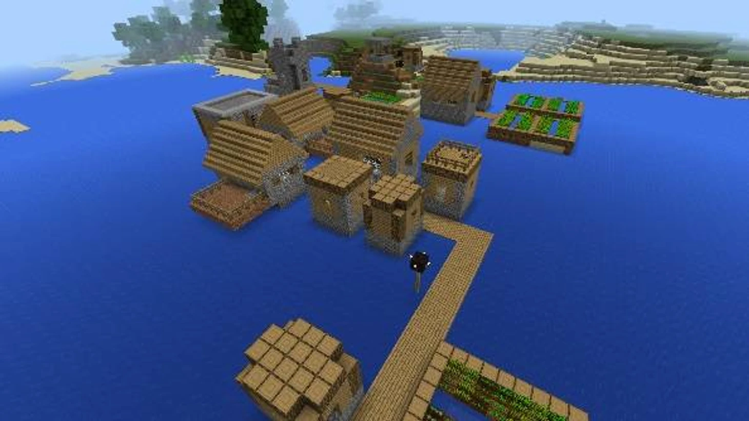 Этот сид уникален очень большой деревней прямо возле старта. Здесь есть много еды и сундуков, в которых множество полезных вещей, которые потребуются на начальном этапе игры. Большое количество жителей также является преимуществом (будет большое количество вариантов для торговли).