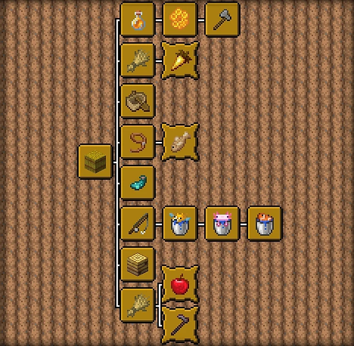 Всего в Minecraft насчитывается 5 ветвей с достижениями, каждая из которых заканчивается целью или испытанием: