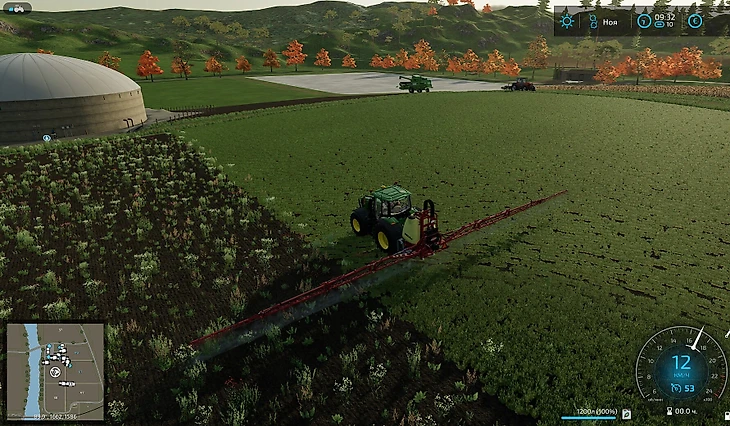 Бывает так, что работник перестает работать, так как комбайн переполнен. В таких случаях нужно на тракторе захватить грузовой прицеп и оказаться максимально рядом с комбайном. Для старта выгрузки нужно нажать клавишу N.