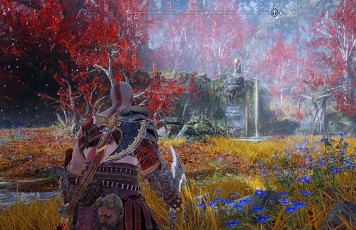 Здесь вы найдете первый сундук Яблоко Идунн (1/11). Он отыскивается во время пролога или потом. Находится рядом с каменной беседкой. Все три руны лежат рядом – просто разрушьте их.