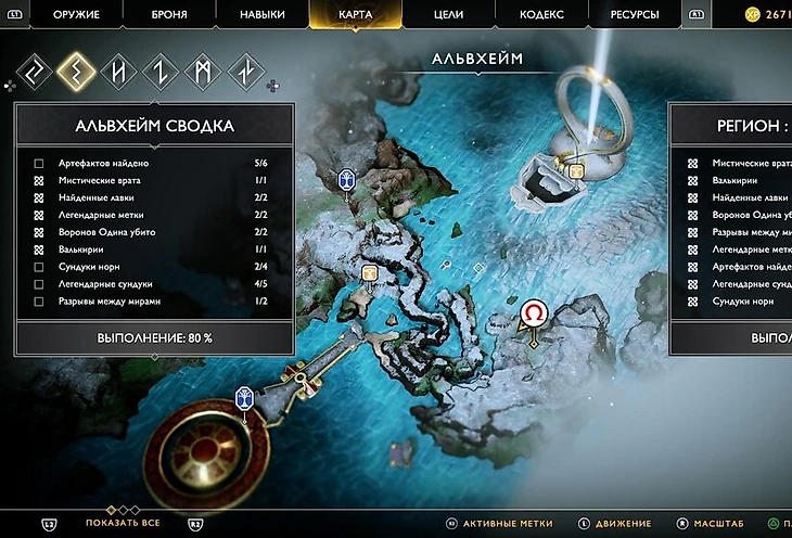 В God of War 21 сундук Норн. Эти сундуки баффают запас здоровья и ярости Кратоса, так что чем раньше вы откроете эти сундуки – тем проще и приятнее получится прохождение игры. Сундуки Норн делятся на два вида – Яблоко Идунн (здоровье) и Рог меда крови (ярость). Чтобы открыть такие сундуки, нужно найти три руны (они расположены рядом с сундуком).