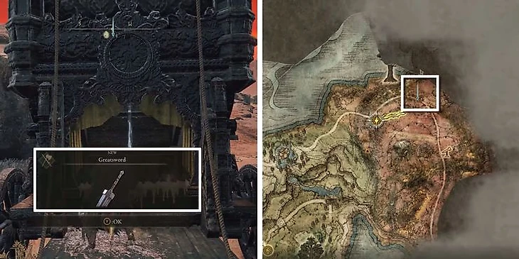 “Великий Меч”, известный из “Берсерк” под названием “Убийца Драконов”, в Elden Ring можно найти в сундуке, на тропе “Мест Благодати” между “Руинами Каелид” и “Балконом Ротвью”. Геймеры смогут попасть к нему, только если будут двигаться к “Тлеющему Храму” на северо-восток от храма Элле, а оттуда направятся в восточную часть, пройдя сквозь “Малое Древо Эрд”. Вы поймете, что добрались до нужного места, как только пейзажи вокруг вас начнут сменяться с темно-зеленых оттенков на кроваво-красный.