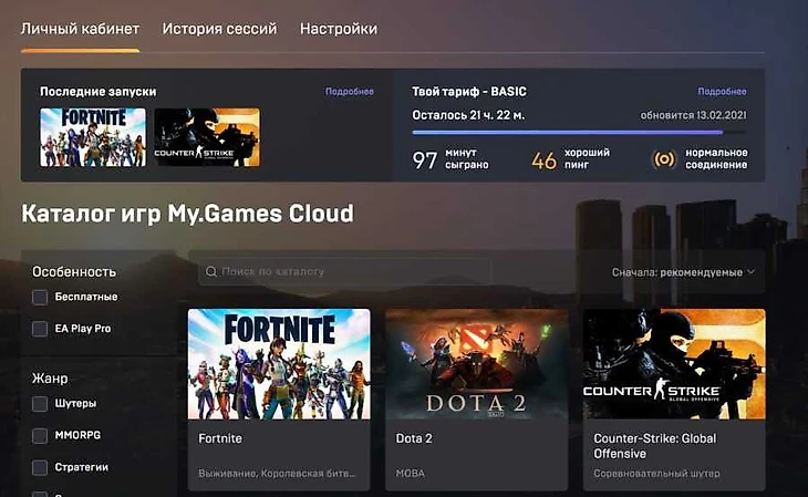 Сервис облачного гейминга предоставляет игрокам следующие возможности: