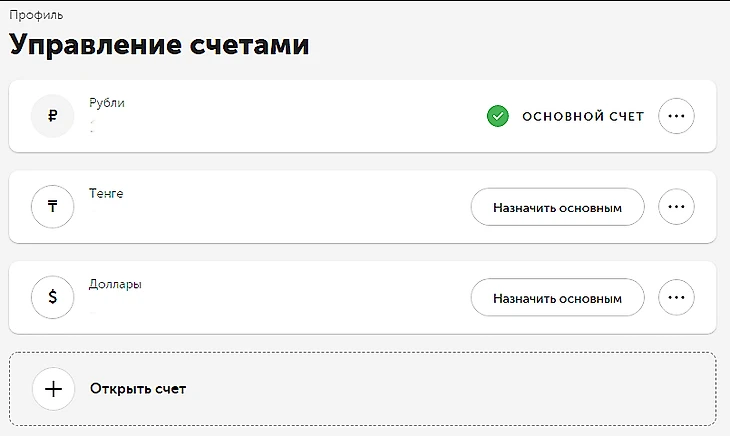 На Qiwi в разделе «Управление счетами» откройте второй счет в тенге и сделайте его главным. Изменить главный счет можно в любую секунду.