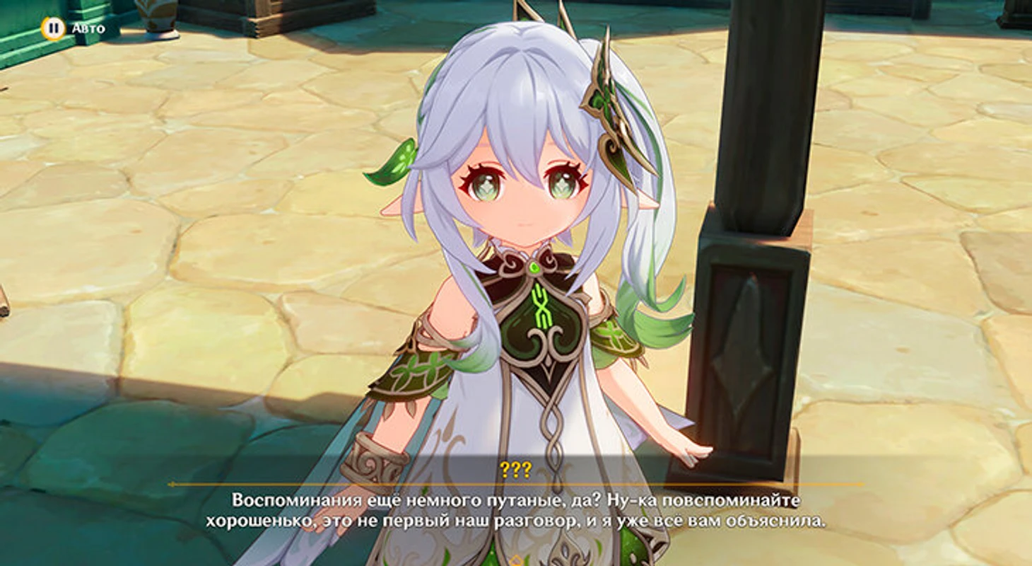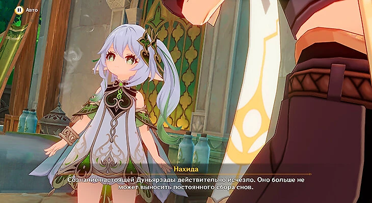 После этого Нахида спросит, кто же она на самом деле – выберите пункт «Луна». Она подтвердит, что на самом деле и есть малая властительница Кусанали.