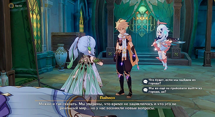Паймон останется в городе, чтобы был свидетель, пока Путешественник изучает, что там за пределами города.