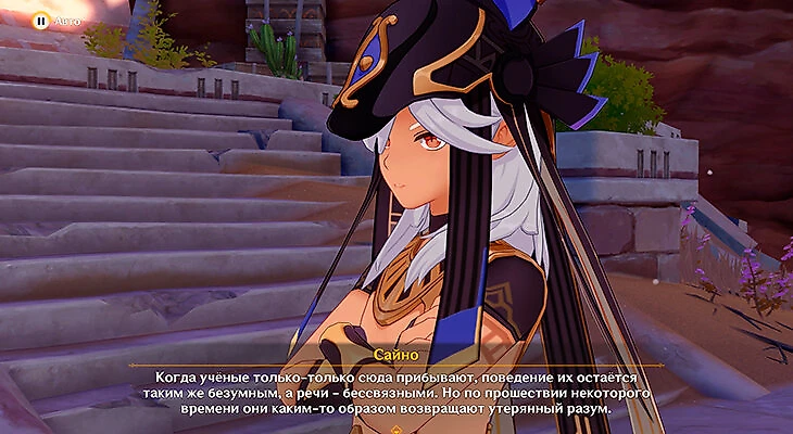 После этого будет еще одна катсцена с нападением на Нахиду и Путешественника. В конце концов Нахида спасется, перенеся свой разум в тело Путешественника, и герой очнется с провалом в памяти. Зато рядом будет Тигнари – он и передаст зашифрованное сообщение малой властительницы. План станет чуть понятнее – ученые из Академии пытаются сделать из Скарамуччи новое божество, чтобы заменить Нахиду.