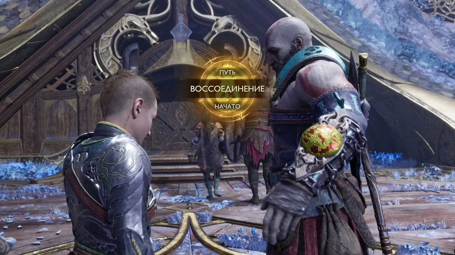 Прежде чем вы сможете отпустить кнопку, Кратос остановит Атрея, сообщив ему, что они не могут избежать своих проблем, и убедит его найти Синдри.