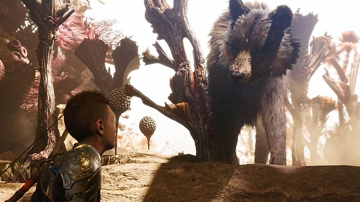 Атрей приходит в себя на какой-то поляне, после чего видит волка. Идем за ним.