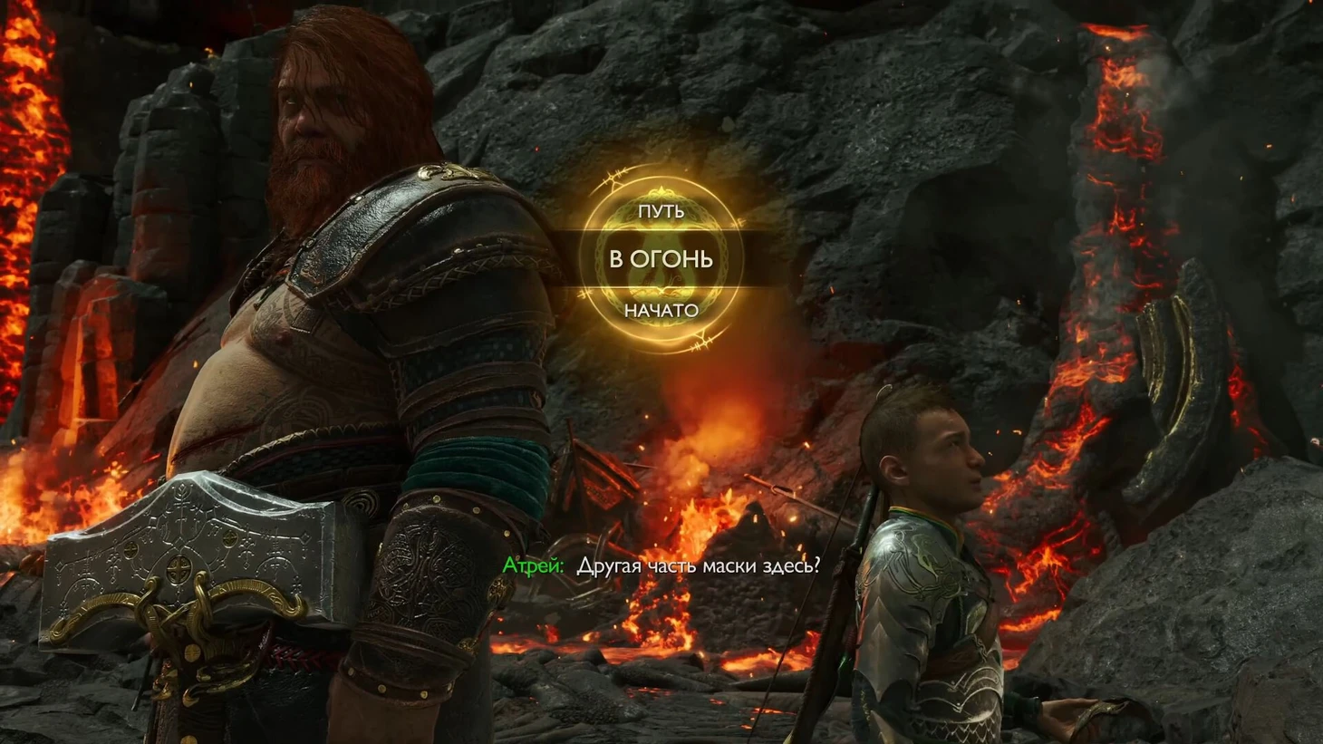 Поручите Атрею выстрелить стрелой печати в лианы, блокирующие щель в стене, и проберитесь внутрь. Пришло время жесткой битвы против Лордов Драугров. Не забудьте собрать остатки зверей. Затем проберитесь за лавовый водопад. Следуйте по тропе за Атреем. Если оглянетесь, то увидите камень, который можно сломать копьем, чтобы найти сундук норн.
