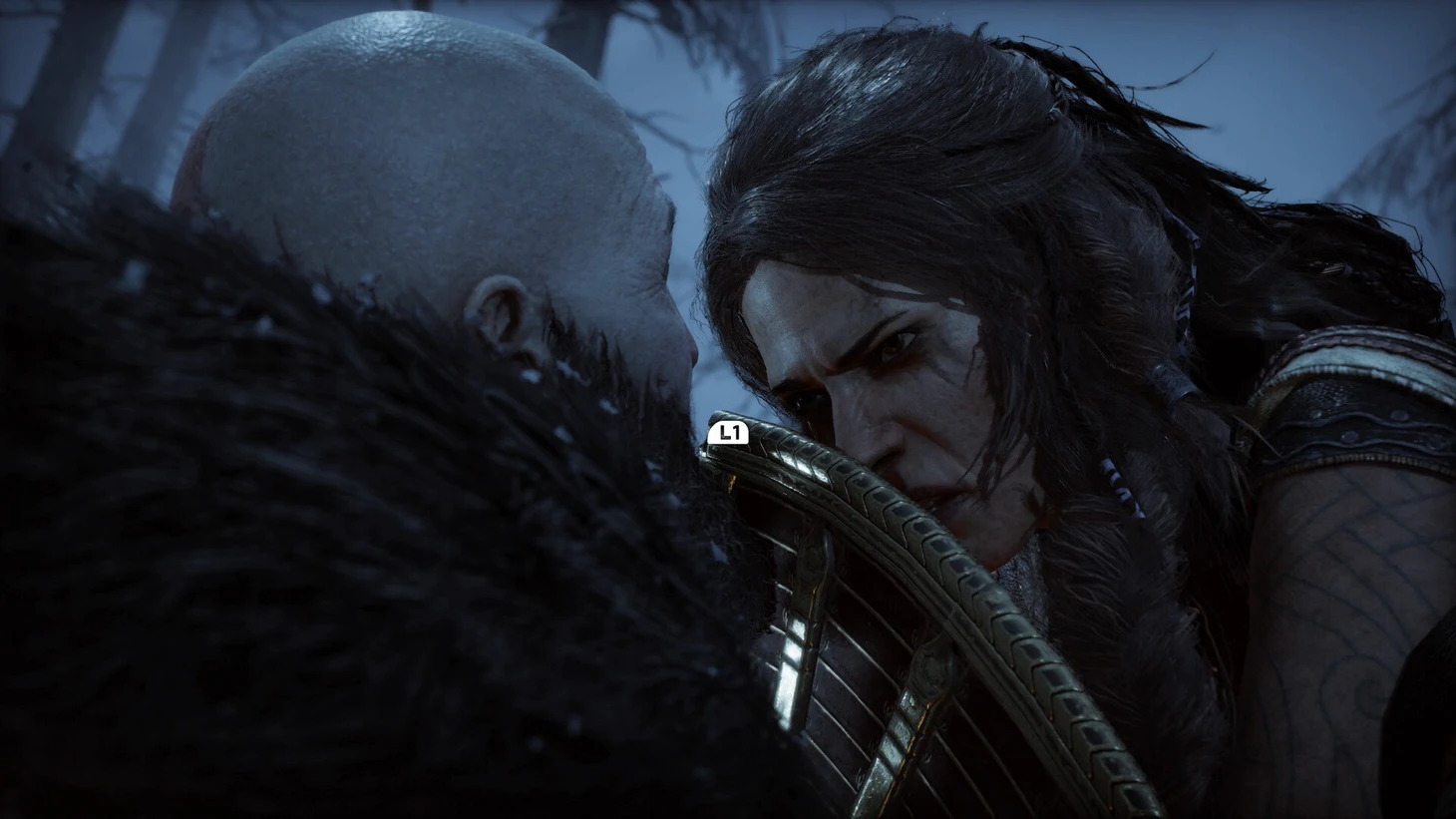 Игра стартует спустя пару лет после событий прошлой части. Возмужавший Атрей возвращается с охоты, грузит добычу на сани и вместе с отцом едет домой. Путь преграждает Фрейя, которая из-за Кратоса лишилась сына. Она атакует сани в облике птицы. Чтобы отбиться, вовремя нажимайте появляющиеся на экране кнопки. QTE простое, проблем не будет.