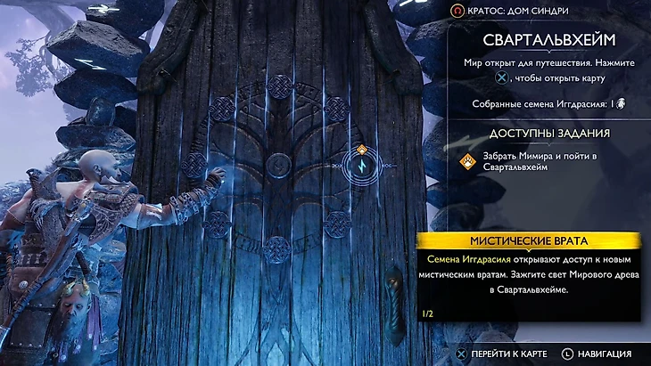 У вас есть одно семя Иггдрасиля и два мира, в который вы сможете отправиться – Альвхейм (сюжетное задание) и Нифльхейм. Выбираем первый вариант и активируем новый квест «Секрет Гроа».